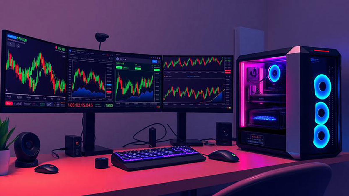 PC trading dengan banyak monitor memerlukan kartu grafis mumpuni yang mendukung beberapa output sekaligus. NVIDIA GeForce seri RTX atau AMD Radeon seri RX menawarkan performa tinggi dengan stabilitas multi-monitor. Jumlah port display juga harus diperhatikan; setidaknya memiliki tiga hingga enam port output, termasuk HDMI, DisplayPort, atau USB-C. Driver grafis terbaru memastikan kompatibilitas dengan berbagai resolusi monitor, mulai dari Full HD hingga 4K, sehingga trader dapat melihat lebih banyak chart dan indikator secara bersamaan. Selain itu, kartu grafis yang hemat daya dan tidak panas berlebihan akan menjaga kestabilan sistem dalam sesi trading panjang.